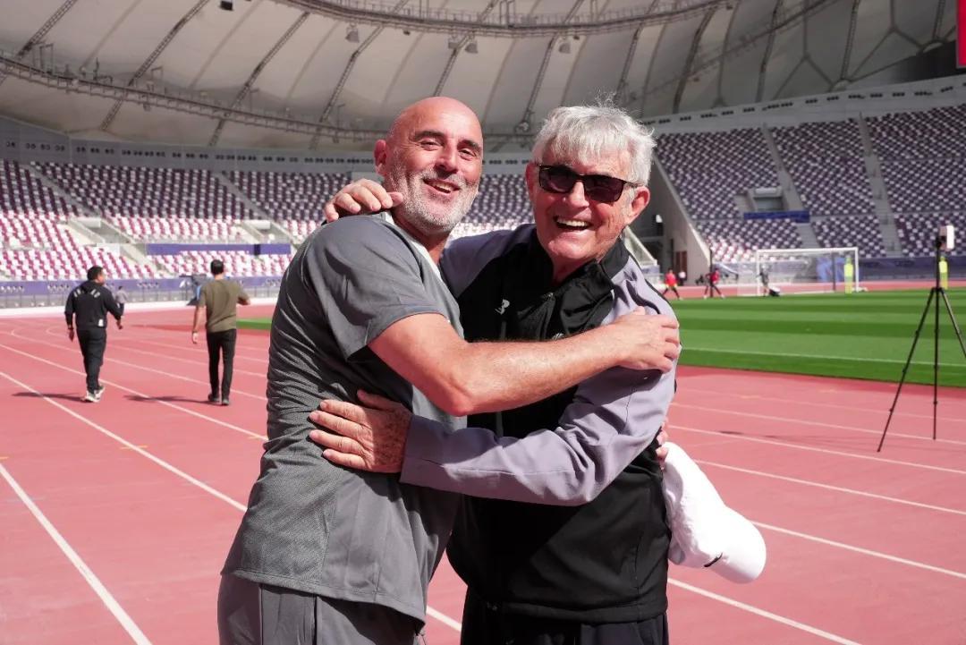 据报道,当地时间周三上午,已定居卡塔尔的传奇教练博拉-米卢蒂诺维奇来到哈利法国际体育场,同穆斯卡特亲切交谈、拥抱寒暄,并在看台上全程观看了当日上午的训练全貌。